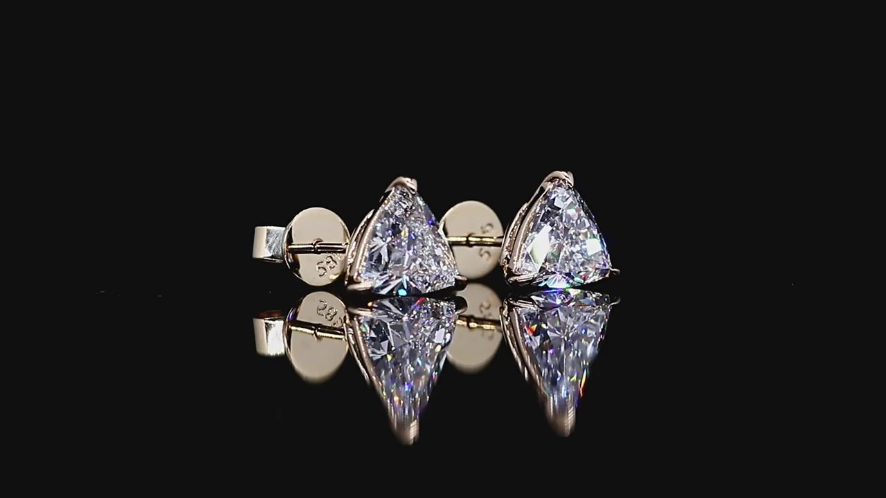 Precision in every angle. These striking geometric stud earrings feature a unique blend of square and triangular facets, masterfully set in 14/18K solid gold. A bold, modern statement for the woman who finds beauty in structure and light.